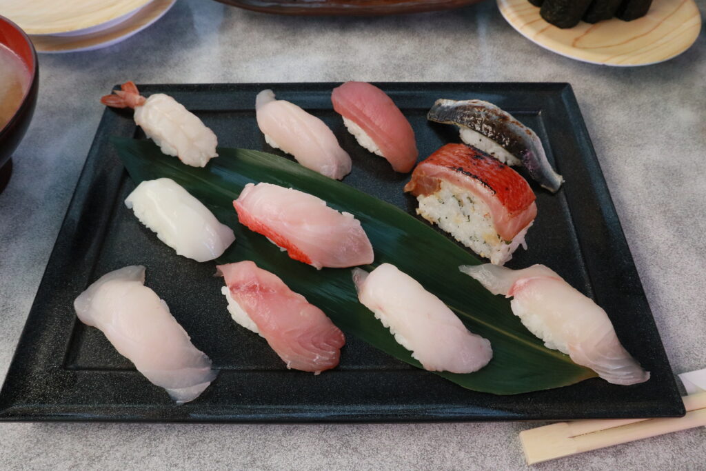 地元魚介類が味わえる地魚回転寿司。おいしい地魚が1皿130円よりお召し上がり頂けます。その日のおすすめをお得なセットにした「地魚三昧」や地金目を色々な味で楽しめる「地金目三昧」などここでしか味わえない一品もお楽み下さい。