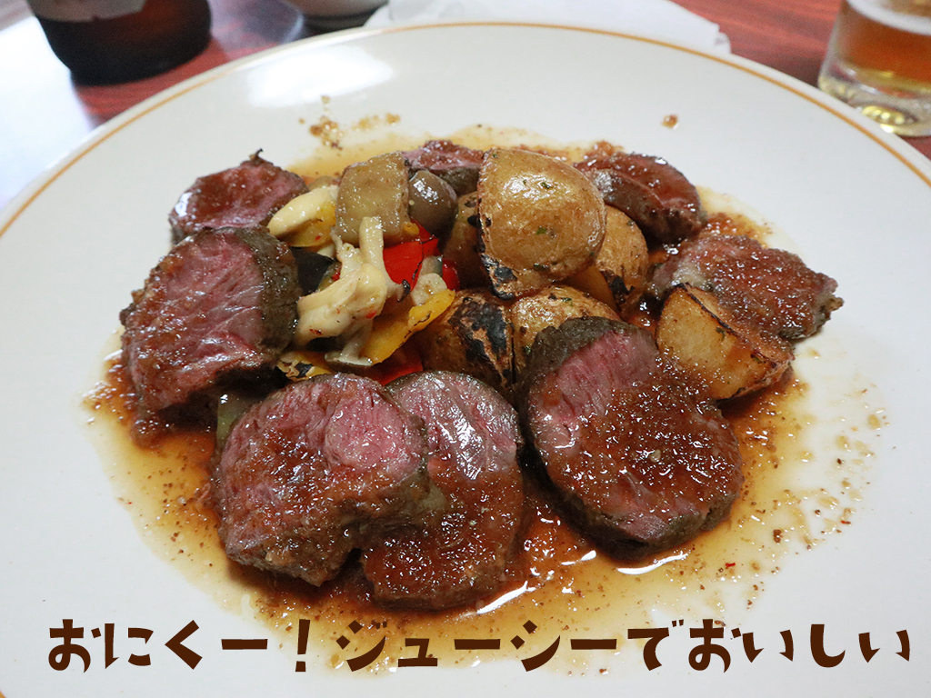 夫と私、なんとか食べきってふぅ〜お腹いっぱい!となったところでメインのお肉が来た!