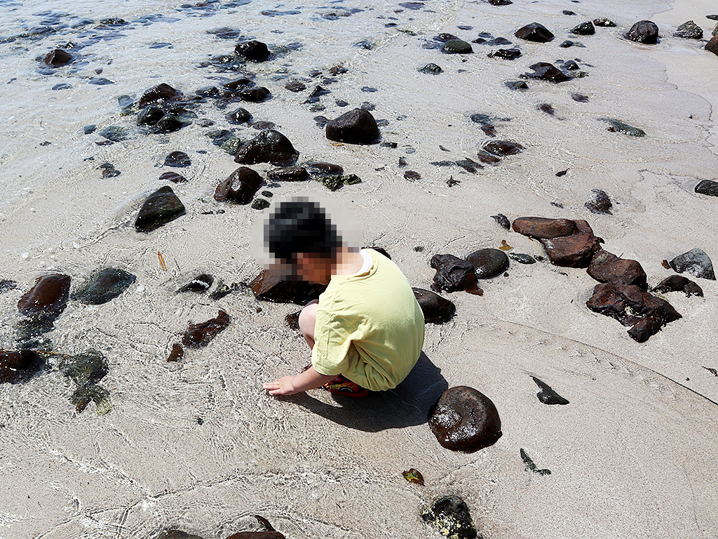 それから不安を落ち着けて岩場の方の穏やかなエリアに誘ってみると