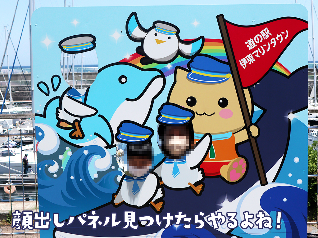 道の駅では顔出しパネルがあったので私と息子は何も言わずに顔を出します