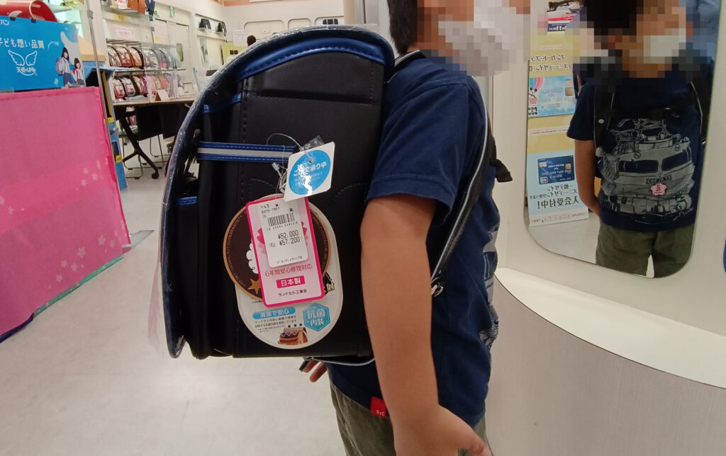 息子はランドセルの試着10秒〜60秒が限界。