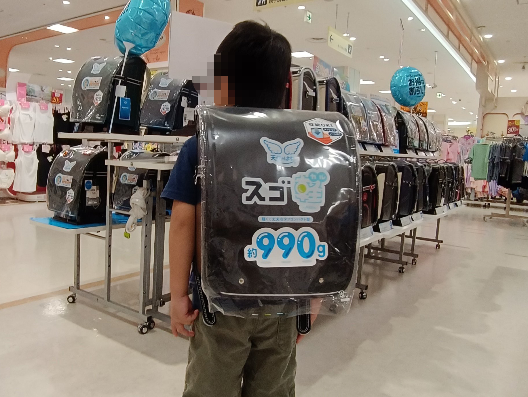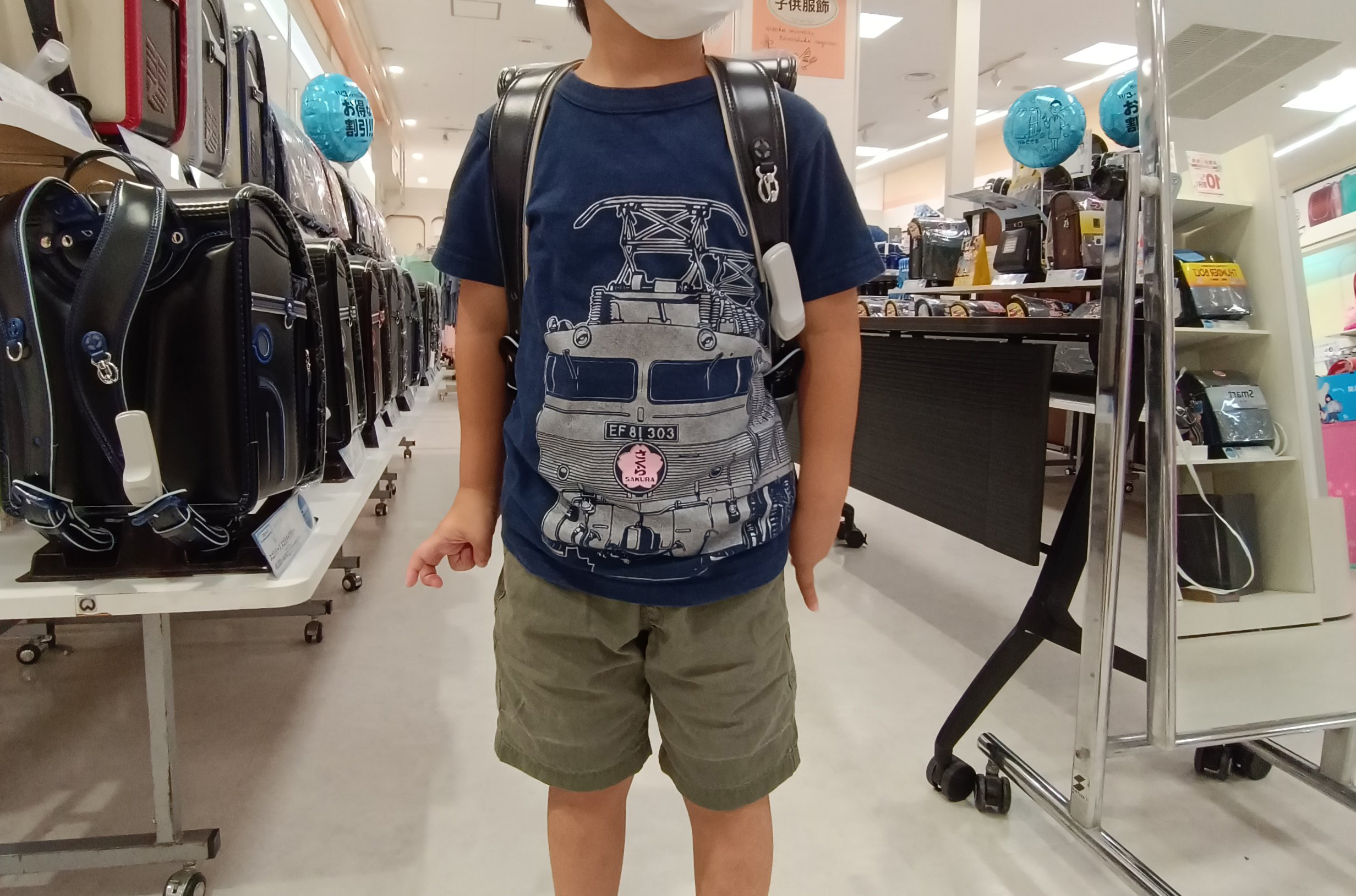 いろんな形とデザインで、息子は1つだけ背負ったらすぐ店を出てしまい、じっくり見学するのを断念。あと、時期が遅かったのか売り切れ商品もちらほら出ていました。